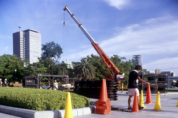 Nikon F3, PC-NIKKOR 35mm F3.5, EBいつもと変わらないように見えた平和公園も,前日の式典の跡が残っていたりするわけで,それを撮ってみたりする,結局,野次馬としての自分がそこにいた。