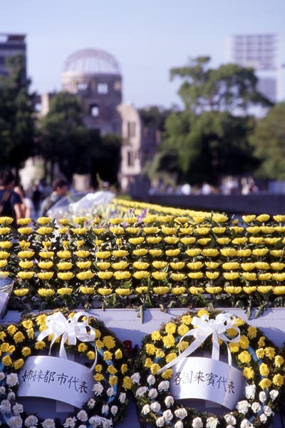 2005年08月07日(日) 天気:晴れ広島を撮る今朝の中国新聞に,島崎省吾氏の写真展についての記事が載っていたので,これを見に行ってみた。島崎省吾氏は,中国地方の風景や行事などを撮りためたライブラリを運営している。記事によれば,これまでは商業写真家としての活動をしてきたが,これからは作家として活動していきたいという意味のことも語られていた。この機会に,「島崎省吾」という(本名とはまったく関係のない)名前を使うのをやめて,本名である「伊藤」を名乗ることにするという。 これに影響を受けてしまったのか,帰ってきてから,平和公園にでかけてしまった。これまで,8月6日の平和公園は,物見遊山的に訪れてはいけないような気がしていて,近づいたことがなかった。ましてや,灯篭流しを,他人をかきわけてまでして撮影しようなどと思ったことはない。ま,今日は7日だから,そのあたりは気にせずにでかけたのである。写真展の影響で,きっちりとモノクロフィルムも用意していったりする。