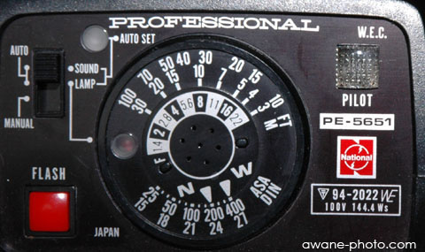 ところでこれは,ナショナル「PE-5651」という,グリップ型フラッシュの操作パネル部である。右下に「旧マーク」があることが確認いただけるだろうか。このフラッシュは,「電気用品取締法」の「甲種電気用品」に該当していたようだ。ということは,このフラッシュは「電気用品安全法」の「特定電気用品」にも該当するわけで,「PSEマーク」がないために,中古品としての売買はできなくなるということになるようだ。