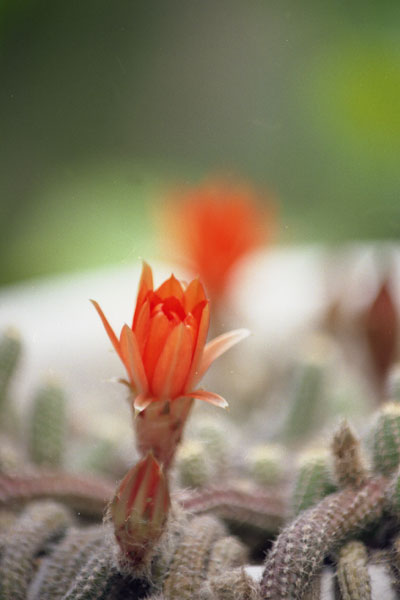 MINOLTA X-7, TAMRON 80-210mm F3.8-4 (03A), JX100サボテンの花は,その色や形態が,たいへん強烈に感じられることが多いと思う。このサボテンも,強烈なオレンジ色が印象的である。そして,今年は,例年以上にツボミがたくさんついている。このサボテンは,朝,明るくなると開花するので,これからしばらく,朝起きるのが楽しみである。 サボテンは,乾燥地帯に見られることが多い。そのため,乾燥に強いとも言えるのだが,水をやる必要がないわけではない。生育期の植物にとって,水が不要なはずはないのである。ただ。やりすぎると,根腐れ等のトラブルが起こりやすいようで,注意が必要である。 |
