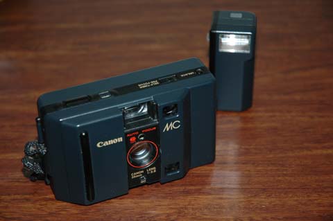 ウインドウを眺めていくと,キヤノン「MC」というコンパクトカメラがみつかった。これは,ミノルタ「AF−C」と同じく,オートフォーカスでフラッシュが内蔵されていないコンパクトカメラである。ミノルタ「AF−C」と大きく異なる点は,キヤノン「MC」は巻き上げが電動化されている点だ。価格は,2000円であり,旅の記念(笑)に購入するには手ごろである。