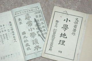 それに対して「小学地理 四」は,和紙ではなく洋紙が使われている。製本様式も,糸による平綴じとなっており,形態的には近代的な書籍の姿になっているといえるだろう。 次に,発行元の違いに気がつくだろう。 「尋常小学読本 巻八」は,国光社により,文部省の検定を受けて発行されている。 一方,「小学地理 四」は,文部省著作であり,合名会社 国定教科書協同販売所から発売されている。