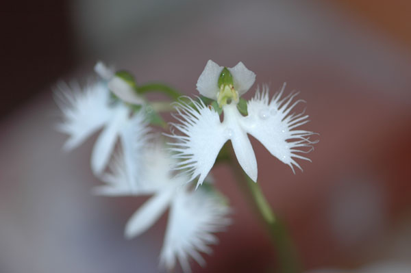 さて,自宅でプランターに植えたサギソウを撮る場合,どのような撮りかたが考えられるだろうか。背景に好きなものを配置できるというメリットはあるが,置くことができる場所,距離,量などの制約は大きい。そうであれば,背景を暗くして,白い花が浮き上がるように撮るのがいいだろうという発想になる。以前は,暗い室内で軽くフラッシュをあてて,イメージに近い写真を撮ることができたが,これを屋外でやろうと考えた。