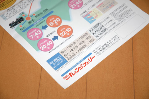 詳しく聞いてみると,大阪−松山の航路(夜行便)に乗り,松山−広島の航路を利用するというのだ。なるほど,それは楽しそうである。こうなると,費用や所要時間など,細かいことはあまり気にする必要はないだろう。