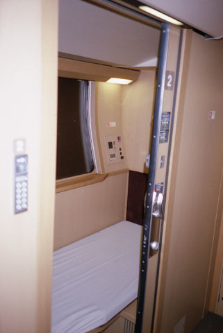 しかし,「ノビノビ座席」は安いせいか,直前に予約したのではなかなか席が確保できないようだ。また,帰路に利用するならよいが,これから仕事に向かうときに利用するのは,少々落ち着かない感じがする。そこで,もっとも安いB寝台個室の「ソロ」を利用することにすれば,新幹線特急料金(2920円),乗り継ぎ割り引きの特急料金(1570)および「ソロ」の寝台料金(6300円)の合計で10790円,「のぞみ」よりも3500円ほど高く,「富士・はやぶさ」よりも1500円ほど高くなる。そのかわり,「富士・はやぶさ」との比較なら,所要時間が短くなるということで,納得しなければならないのだろうか。