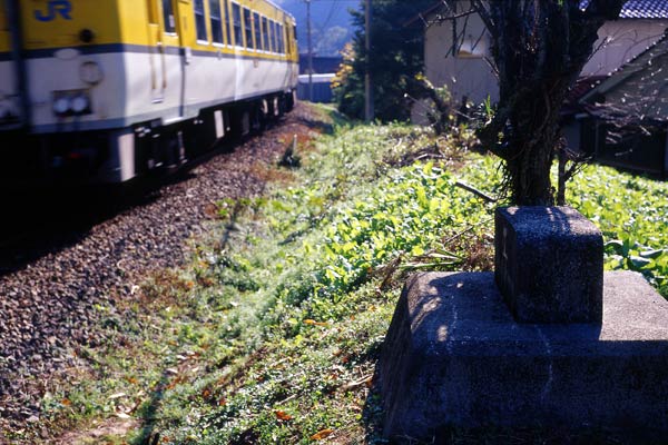 坪野駅から少し加計方面に行ったところに,「国鉄2万kmの碑」というものがある。新線が開通するたびに,国鉄の路線延長が伸びていき,それがちょうど2万kmに達したということを示している。この地から鉄道はなくなったのだが,かつて日本国内に鉄道がつぎつぎに建設されていた時期があったことを示すこの碑は,これからもこの地に残るのであろうか。