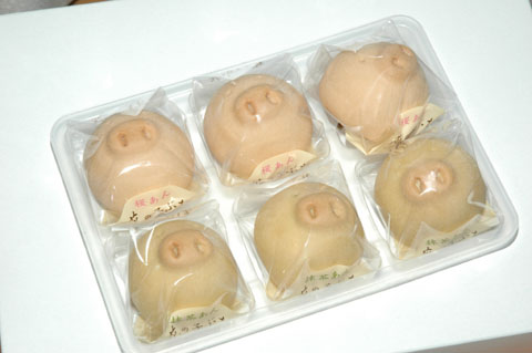 「おみやげ」には,今回も「銚子電鉄のぬれ煎餅」を買うつもりだった。しかし,それを扱っている「入船堂」に寄ってみたところ,無情にも「品切れ」の貼り紙があった。しかたがないので,この秋に見つけた,鎌倉五郎の「花の子ぶた」を買って帰ることにした。見てのとおり,かわいらしい「ぶた」の顔をしたおまんじゅうである。「桜あん」と「抹茶あん」の2種類の味がある。私は「桜あん」の方が好きかもしれない。