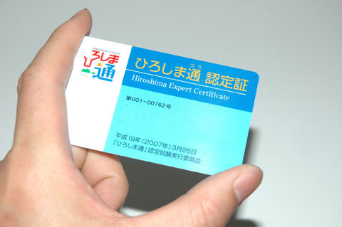 「ひろしま通」認定証※1 http://www.hiroshimacci.or.jp/hirosima_tuu/hiroshima_tuu_goukaku.html ※2 http://www.hiroshimacci.or.jp/hirosima_tuu/hiroshima_tuu.html |