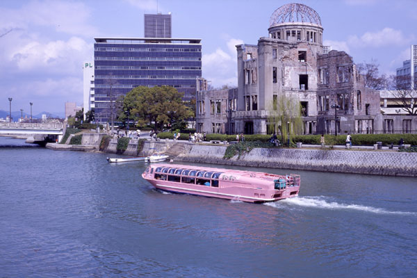 2007年04月05日(木) 天気:晴暗くなってもがんばる「すいすい」これまで,この日記では,「世界遺産航路」(宮島−平和公園)に乗った話(2006年11月26日の日記を参照)や,「雁木タクシー」(小型モーターボートによる平和公園周辺の遊覧)に乗った話(2007年1月14日の日記を参照)を紹介してきた。市内中心部を流れる川を運行する遊覧船は広島市特有の風景の1つとして定着してきたといえるが,これらの遊覧船は,1989年の「海と島の博覧会」をきっかけに設立された第3セクターの広島リバークルーズ(株)による遊覧船の運航からはじまったといえるだろう。広島リバークルーズ(株)では当初,「すいすい」と「るんるん」という2隻の船で運行されていた。しかし,利用者の低迷から経営が成り立たなくなり,2002年3月に解散となっている。