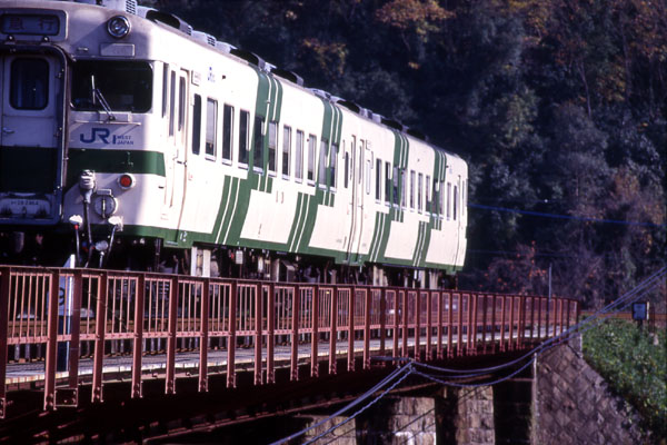 芸備線の急行列車(1997年の撮影)「つやま」と「みよし」以外は,夜行列車である。また,「みよし」以外は1往復だけの運転である。また,私は「鉄」ではないので詳しいことはわからないが,「みよし」だけが,「急行」列車の全盛期に「急行列車用」として製造された車両が使われている。悪く言えば,旧態依然とした古典的な列車になってしまっているということだ。逆に,そこに旅情を感じるという人もあるかもしれないが,広島と三次の間には,高速道路を経由するバスの便も多く,それと十分に争えるような状況ではないようだ。広島市内中心部からの所要時間を考慮すれば,バスの方が有利であろうし,「急行料金」が必要な分,利用者が支払う費用の面でもバスの方が有利だろう。 車両が古く,急行料金が高いとしても,バスにくらべれば鉄道車両はゆったりしていて,楽である。広島市内中心部と三次とを結ぶのであれば,芸備線は不利な位置にあると言えるだろうが,新幹線などからの乗り換え客を対象に考えれば,そういう問題はなくなるだろう。このとき,個人的には指定席の設定がほしい。いまは広島に住んでおり,その列車を利用することもないと思うのだが,私が他府県に住んでおり新幹線を利用して三次を訪れようと考えるなら,新幹線から乗り換えたあとにも座席が確保されていると,気分的にも楽である。 ところで,今回の「平成19年夏のダイヤ改正(広島・山口エリア)」では,新幹線に関係するものもある。新型車両(N700系)の導入が大きなニュースとして注目されるだろうが,現在は可部線から乗り継ぐことができない,朝一番の「のぞみ」に,可部線から乗り継げるようになるというのも,利用者にとっては大きなニュースとなるであろう。(※2) ※1 http://www.westjr.co.jp/news/newslist/article/1172977_799.html ※2 http://www.westjr.co.jp/news/newslist/article/070509_hiroshima1.pdf |