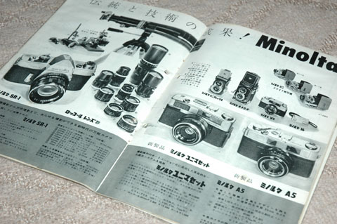 「ミノルタ」は「千代田光学精工株式会社」だから,「ニコン」よりも先に登場してくる。一眼レフカメラ「ミノルタSR-1」用の交換レンズも,広角側は35mmまでだ。価格や細かい仕様は記載されていないが,「ミノルタオートコード」の姿もここには見られる(上の画像も参照)。