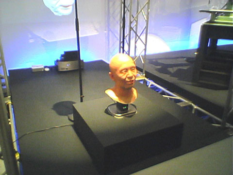 画像は,携帯電話のディジタルカメラ機能によるもの。「顔の表情」が「動く」ロボットである。皮膚の感じが,遠目にはリアルに見える。つまり,「生首」だ。それが動いているのだから, き も ち わ る い ・・・と感じる人も少なくないはずだ。そのせいか,ほかのロボットにくらべて,その前が比較的空いていたような気がする。空いていたのは,単に,いちばん奥に展示されていたからかもしれないが・・・・ 多数のロボットが展示されているフロアを出て上の階へ上がると,そこではHONDAの「ASIMO」のショーがおこなわれる。30分ごとにショーがおこなわれ,定員制,入れ替え制をとっているらしく,しばらくそこで足止めされる。 「大ロボット博」そのものを見ていたのは,1時間半くらいだっただろうか。そのあと「地球館」という展示施設を駆け足で見て,そろそろ疲れたなと外に出ると,すでに12時半を過ぎていた。「大ロボット博」への入場を待つ列はかなり伸びており,その列の先頭付近では「入場は40分待ちで〜す」と叫びながら,列が整理されていた。暑くもなく寒くもなく,空はいい天気で列のところは適度な木陰だ。ただ1つ,蚊が多いことを除いて,たいへん快適な場所なので,入場を待つのもさほど苦痛ではなかっただろう。いや,蚊が多いのは,かなり苦痛なことかもしれぬ・・・・。 |