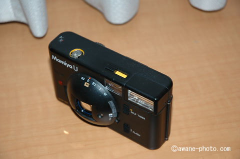 マミヤUは,オリンパスXA2と同様に,ピント調整は目測式のEEカメラである。オリンパスXA2は専用フラッシュを取り外しできる構造だったが,マミヤUはフラッシュを内蔵している。そのため,オリンパスXA2よりは大きなボディになったが,それでも当時のカメラとしてはコンパクトな部類に含まれていた。また,オリンパスXA2のピント調整はカメラ前面のレバーを操作しておこなうようになっていたが,マミヤUはレンズ回りのリングを回しておこなうようになっている。シャッターレリーズボタンの位置も含めて,より,「普通の」カメラとしてまとまっている。ただ,当時のフラッシュ内蔵カメラは単3乾電池2本を電源とすることが多かったが,マミヤUはそのコンパクトさゆえに単4乾電池2本を電源として使用するようになっていた。