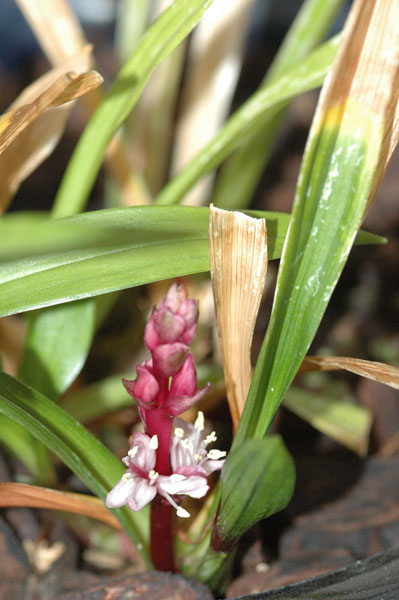 2007年12月18日(水) 天気:晴ときどき曇吉祥草,咲いてます昨年(2006年11月19日の日記を参照)購入したキチジョウソウ(吉祥草)が咲いた。