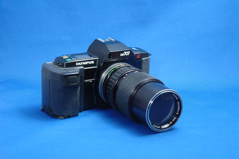 OM-707は,なんといっても,マニュアル操作がほとんどできないことが問題だ。オートフォーカスで使うことが前提のカメラであり,オートフォーカス用レンズには,ピントリングがない。レバーの操作でマニュアルフォーカスをおこなう機能は用意されているが,これが実に使いにくい。マニュアルフォーカスの目的である「精密なピント合わせ」用の機能ではなく,「オートフォーカスではピントがあわせられないとき」の緊急事態用の機能であるとしか思えない。