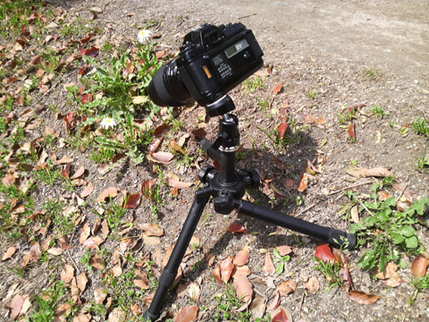 背の低い花の接写においては,三脚も背の低いものが便利である。ローアングル撮影が容易であれば,言うことなし。こんなときには,ケンコー「ハイパーローアングル三脚」の出番だ(2002年9月15日の日記を参照)。これを改良したものが,スリック「ローアングルエキスパート」のようだ。開脚についての自由度は極めて高い。コンパクトで軽いわりには,しっかりした印象を受ける。ただ,その操作性はきわめて煩雑である。とはいえ,こういう場面での使用には,実に適した三脚なのであった。