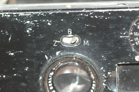 レバーを左側「Z」にすると,シャッターレリーズレバーを操作するとシャッターが開き,もう一度,シャッターレリーズレバーを操作するとシャッターが閉じる「タイム露出」になる。