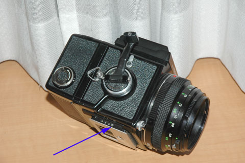 クランクをほぼ1回転させれば,フィルムの巻き上げとシャッターのチャージが完了する。二眼レフカメラのRolleiflexのように,クランクをほぼ半回転させてフィルムの巻き上げ,それを逆に回してもとの位置に戻せばシャッターのチャージという動作も合理的だが,ZENZA BRONICA ETRSのようにくるっと1回転させる方が,潔く感じられてストレスがない。