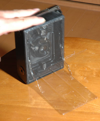 奥にひっこんでいるレンズボードをそおっと引き出してみる。シャッターをT(タイム)にしてレンズを開放し,ピントグラスを覗けば,そこにはちゃんと像が写っている。これは,まぎれもなく乾板を使用するハンドカメラである。