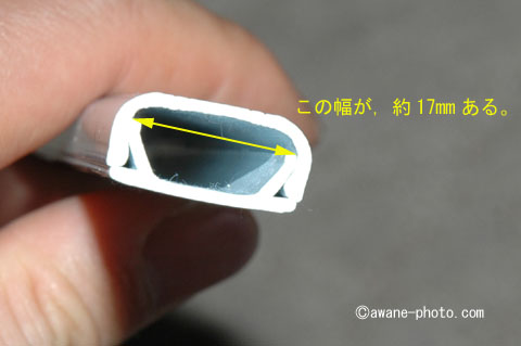 ところが,電池を買うためにダイソーに立ち寄ったとき,「配線カバー」というものが目にとまった。幅21mmの「Lサイズ」の内側を測ってみれば,その幅は約17mm。このすきまに,ちょうど110フィルムを固定することができそうだ。現像リールの代用品として使えるかもしれない,と閃いたのである。