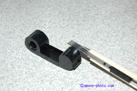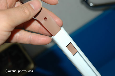 110フィルムの長さは,約70cmある。内側の幅が約17mmの配線カバーは,約80cmの長さに切り,ところどころ大きく穴をあけて現像液が十分にまわりこむようにしてある。ここに取りだした110フィルムをつっこんでいく。もちろん,暗室内での作業だ。