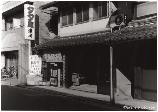 2010年06月05日(土) 天気:晴れ6月4,5日は「セミ判の日」2006年1月には,ニコンがフィルムカメラのラインアップを大幅に整理することと,コニカミノルタが写真・カメラ事業から撤退することという,衝撃的な発表が相次いだ。このときすでに京セラも,CONTAX事業からの撤退を発表しており,フィルムカメラの時代が事実上終わりを迎えたのである。ただし,あたらしいフィルムカメラが供給されなくなったとしても,すでに存在している大量のフィルムカメラの機能は,維持されている。フィルムの供給と,その現像サービスさえ続けば,まだまだフィルムカメラを使い続けることができるのだ。ライカを見よ,ニコンFを見よ,発売から50年以上が経過していても,じゅうぶんにきれいな写真を撮ることができる機能は維持されているのである。 ということで,私たちのように,趣味で写真を楽しむ者としても,中判写真の楽しさを伝える努力をしていこうではないか。そう考えて勝手に提唱したものが「中判写真週間」である。 まず,県道に出て,先日の畳屋さんを撮る。朝から天気がよく,看板にくっきりと影が出てしまったのは,訪れるタイミングが悪かったか。ただ,いつもの看板は,相変わらず存在感が大きい。まだまだ,これからもがんばれ。