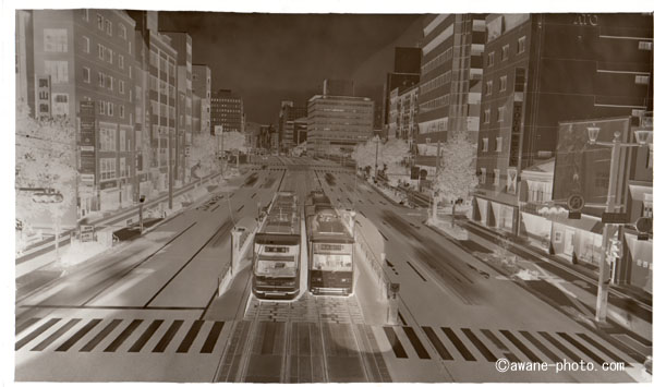 OKUHARA CAMERA, FUJINON W 210mm F5.6, FUJIBRO WP FM2今日はとても天気がよく,しかもまだ日は高い。それでもF11あるいはF16くらいまで絞りたいと思えば,露光時間は1/2秒あるいは1秒くらいはほしいものだ。だから,動いているものを撮るのは,まあ無理だ。でも,止まっているものならば問題ない。 さて,次の大判写真の日は,11月14日だ。時間がとれればその機会にも,今日と同じように,四切1/2判の撮影にチャレンジしたいものである。 |