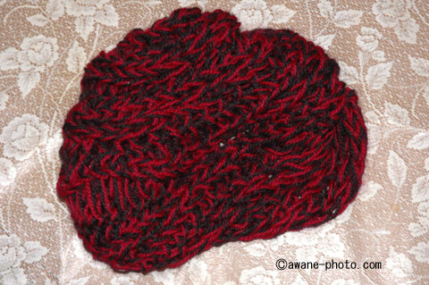 最近,ふとしたきっかけで,「ゆび編み」というものをやってみた。「ゆび編み」とは,棒針やかぎ針などを使わず,指だけでする編物である。はじめて挑んで,なんとか形になったのが,この帽子だ。