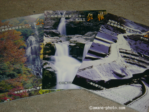 中央が一昨年度の16号で,三段滝の写真である。左は昨年度の17号で,常清滝の写真である。表紙の写真のテーマは「水」ということで,私の撮影したこれらの写真を選んでいただけたようだ。ところで,私としては三段峡と常清滝とで,大きなテーマはネタ切れとなる。だから,今年度はさすがにご縁がいただけないものかと思っていたら,さにあらず。右は今年度の18号で,井仁の棚田の雪景色を選んでいただけた。 *1 http://www.hiroshima-khc.jp/ |