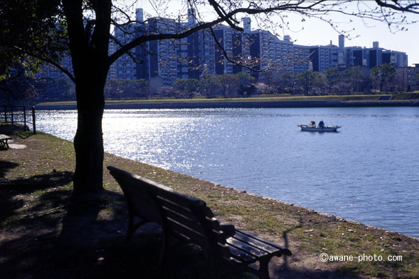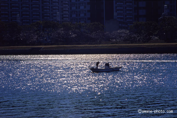楠木の大雁木は,本川の右岸,すなわち西側にある。朝の光は,ちょうど川面に反射して,印象的な光景をつくりだしてくれる。川のまんなかには,しじみ採りと思われる小船も浮かんでいる。街の中心部近くで,川岸のベンチに腰をおろしてそれを眺められるのは,広島ならでわのことではないだろうか。