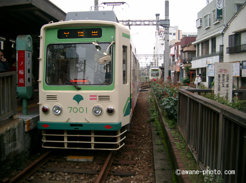 都電といえば路面電車なわけだが,荒川線が路面(道路)を走る区間はあまり多くない。ほとんどが,道路とは区切られた専用軌道を走る。しかし,幹線道路とまじわるところは踏み切りになっておらず,交通信号にしたがって止まることになる。停留所の間隔も長くないので,まさに少し走っては止まり,また少し走っては止まるの繰り返しである。