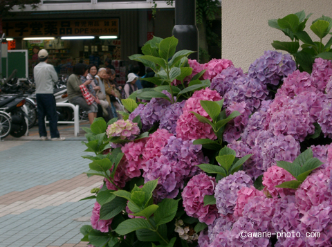 アーケードのある商店街(ジョイフル三ノ輪)は,「三ノ輪橋」の近くから1つ手前の停留所である「荒川一中前」あたりまでつづいている。ぶらぶらと商店街を歩いてみるが,あまり人が多くない。お昼前だというのに,シャッターの降りているお店もあり,ややさびしい。それでも商店街の中央付近までくると,ややにぎやかになってくる。アーケードに隣接してアジサイの咲く公園もあり,ご年配の方々が集っているようすも見られる。通る人やお店の人の高齢化率も,決して低くはないようだ。