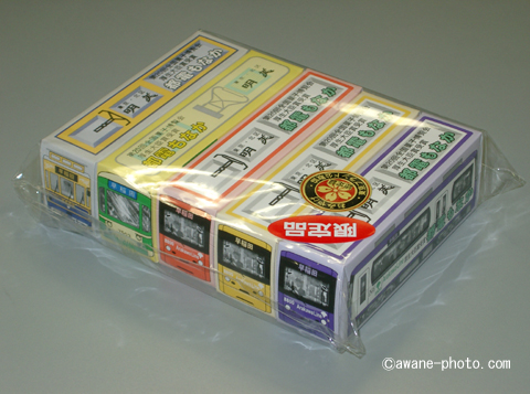 お店を見回せば,ほかにも上品そうなお菓子がいろいろある。いや,そのようなお菓子が,このお店の本来の姿なのだろう。時節がら,夏っぽいものもある。今回はそのなかから選ぼうと思ったのだが,ふとカウンタの上をみると「限定品」という文字が。よく見れば,それは「都電もなか」に貼られたシールであった。なぜか「5個入り」パッケージに「限定品」というシールがある。「限定品」ということばに弱い私は,それにつられるまま,結局,「都電もなか」ばかりを買ったのであった。ただ,なにがどう「限定」されているのか,よくわかっていない(笑)。