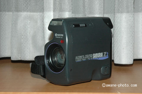 オリンパス「ペン」やリコー「オートハーフ」の時代は,ハーフサイズカメラのブームであったともいえる。その後,いちどは下火になったハーフサイズだが,1980年代後半になって,ふたたびハーフサイズカメラのブームが訪れた。その嚆矢といえるのは,京セラ「サムライ」である。「サムライ」は,「ズームレンズ内蔵」の「オートフォーカス」カメラで,いちおう一眼レフ形式になっていた。「サムライ」は,「ブリッジカメラ」ともよばれる,ズームレンズ固定式のフルオート一眼レフカメラの嚆矢でもあった。「サムライ」にもいくつかのモデルがあるが,この夏,たまたまリサイクルショップのジャンクコーナーから救出したのは,コンパクトになった「サムライZ2」である。救出にかかった費用は100円だったが,残念なことにレンズに激しくカビが生じている。この部分は,接着して製造されているようで,分解して清掃することができそうにない。修理を前提に考えられていないという意味で名機とは呼び難いが,「サムライ」も1つのエポックメイキングなシリーズなので,忘れるわけにはいかないだろう。