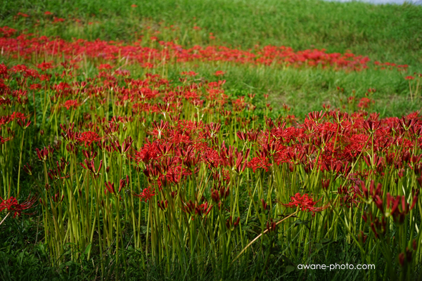 SONY α7, NOKTON classic 40mm F1.4 MCさて,今朝まで降っていた雨があがり,よく晴れた空が広がっている。いつもの川の土手へ行き,ヒガンバナを眺めてみることにする。土手の下から見上げるようにすると,背景に建物などがあまり入ってこずに,すっきりした画面が得られる。