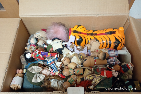 複数の人形をまとめて人形供養にお願いしたいので,人形をケースから出してコンパクトな状態にしてつれていきたい。そのほか,ケースに入っていない人形なども含めると,かなりの数があることをあらためて認識させられることになった。