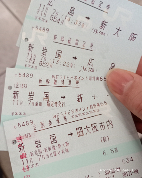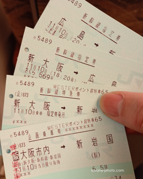 今回,広島と大阪との往復には,新幹線の「WESTERポイント超特典きっぷ」という格安の切符を利用した。