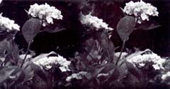 右の写真は,アジサイの花を撮ったステレオ写真である。