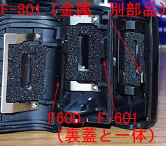 少しわかりにくいが,F60D,F-601,F-801の裏ぶたを並べてみた。