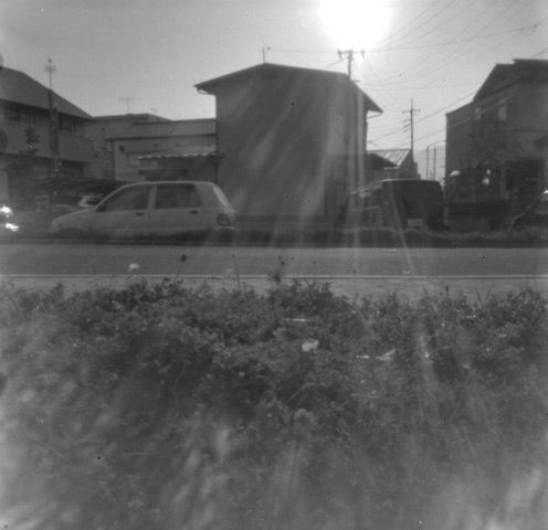 このような像は,レンズを使ったカメラでは,絶対に得られないものであろう。こういう撮り方が,このカメラではもっともおもしろいかもしれない。 次は,スプリングカメラのジャンク品を入手したいと考えている。レンズのかわりにピンホールをとりつけ,蛇腹をたたんだ状態で撮影すれば,より広角なピンホールカメラが簡単にできないものか,と期待しているのである。 |