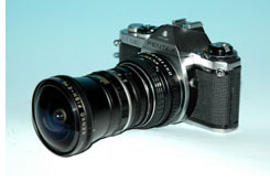このコンバージョンレンズのおもしろいところは,焦点距離50mmのレンズに取り付けると円周魚眼レンズとして,焦点距離100mmのレンズに取り付けると対角線魚眼レンズとして使えることである。