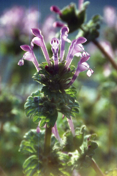 2006年04月01日(土) 天気:曇STORZで撮る「カール・ストルツ」の内視鏡用レンズ「593-T2」だが,ライトボックスの上においた定規だけを撮ったところで,なにもおもしろくはない(2006年3月30日の日記を参照)。さっそく,屋外で実際になにかを撮ってみよう。 このレンズは,最大撮影倍率がおよそ1:1.4の「望遠ズームマイクロレンズ」として使えそうである。となると,小さな花をとりあえず被写体にしてみるのがよい。この季節なら,ホトケノザが最適だろう。ホトケノザは,ちょっとした公園の隅や道ばたなどで,簡単に見つかる。やや逆光気味の花を見つけて,さっそくファインダーを覗いてみた。「593-T2」は,たいへん暗いレンズである。したがって,ファインダーの視野も,たいへん暗い。大口径レンズではないために,ファインダー上では,被写界深度はかなり深く見える。しかし,撮影倍率が高い状態であることもあり,屋外の明るい場所での被写体ならば,ピントあわせは十分に可能である。