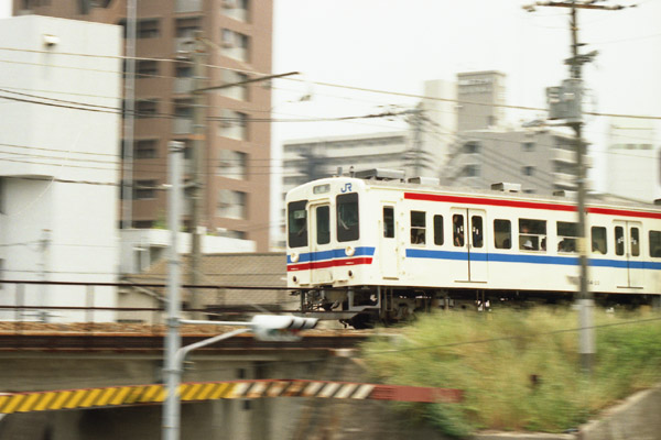 2006年06月06日(火) 天気:晴キヤノンT80の意義ミノルタ「α-7000」は,オートフォーカスシステム一眼レフカメラを形作った,歴史的名機といえるカメラである。その新しいシステムのために,ミノルタはレンズマウントを変更した。それ以前から定評のあった,MDマウントシステムとの互換性は失われたのである。ミノルタのオートフォーカス一眼レフカメラは「α」シリーズであり,マニュアルフォーカス一眼レフカメラ「MDマウント」のシリーズとは,まったく別物となったのである。 キヤノン「FDマウント」のシリーズのカメラは,まず2つに大別できる。それは,「F−1」とそれ以外である。「F−1」以外のカメラは,3つに大別できる。Aシリーズよりも前のもの,Aシリーズ,Tシリーズである。Aシリーズは,カメラの動作の電子化を目指したもので,露出の自動化(AE)が実用化されたモデルであると言ってもいいだろう。Tシリーズは,Aシリーズの自動化をさらに発展させたものといえる。その内容として,「T50」や「T70」におけるプログラムAEの積極的な採用,ワインダーの内蔵があげられる。さらに,「T80」ではピント調節の自動化も実現された。オートフォーカス撮影用に,「FDマウント」と互換性のある3本のACレンズ(50mm F1.8, 35-70mm F3.5-4.5, 75-200mm F4.5)が用意された。それらのレンズは,ピントリングを駆動するモーターがレンズに内蔵されたタイプのもので,モーター部分が四角くでっぱった,不格好なものであった。ところで,「T80」の登場は,1985年のことである。1985年というと,ミノルタ「α-7000」が登場した年である。「T80」は,「α-7000」の大ヒットに隠れて,目立たない存在になってしまったようだ。 ところで,「T80」の特徴は,オートフォーカス一眼レフであることだけではない。「T80」は,5種類のプログラムAEをもち,それらのモードを液晶パネルに「絵文字」で表示する。このようなユーザインタフェースも,「T80」の特徴であるといえる。 とりあえず,それらのモードに,明らかな効果の違いがあるかどうか,試してみよう。まずは,通常のプログラムAEで,走っている電車を撮ってみよう。これは,駅のすぐそばであり,あまり速くは走っていない。