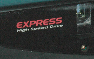 さらにジャンクコーナーを見ていると,マルマン「エクスプレス(EXPRESS)」というカメラを見つけた。一見すると,露出調整がお天気マーク式の,普通の安価なカメラである。しかし目を引いたのは,レンズの焦点距離が24mmであると記載されている点である。超広角レンズのカメラならおもしろいな,と思ったのだが,裏蓋を開けてみて納得,ハーフサイズカメラであった。さらに見てみると,巻き上げノブはなく,電動巻き上げのようである。そして,カメラの正面には「High Speed Drive」という文字がある。どの程度の「High Speed」なのだろうか?その答えは,カメラの上部にあった。切り替えスイッチがあり,その一方に「8ex./1sec」とある。