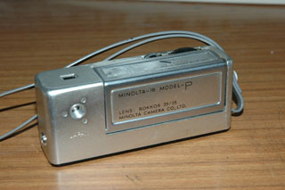 2006年08月04日(金) 天気:はれ2つのミノルタ16P16ミリカメラが欲しくなった,ということは先日,この日記にも書いた。16ミリカメラは,そのカートリッジが入手困難なことから,もはやコレクション対象としての流通が主となっている状態であろう。幸い,多くの16ミリカメラは金属ボディをもち,絞りくらいは操作できるようになっているなど,精密な機械としての魅力がある。このため,まだ,コレクション対象としての価値はあるのだろう。 仕事を片づけて,マルシンカメラに立ち寄った。期待通り,ジャンクカメラが豊富である。お店の入り口に近いところから順に見ていくと,最初に目についたのはマミヤのムービーカメラである。これも実用性は「ゼロ」だが,マミヤのムービーカメラを見かけることは少ないので,ほかに欲しいものがなければこれを連れて帰るのもいいかな,と考えたものである。 そうして,ジャンクコーナーのもっとも奥の方まで行くと,期待通り,ジャンク扱いの16ミリカメラが見つかった。見つかったものは,1960年に発売された「ミノルタ16P」である。シャッター速度は単速で,絞りはお天気マークで選択できる,機構が簡略化されるとともに操作も簡便になったモデルである。この価格は2625円であり,もう少し安く買えるとありがたいのだが,と思いながらもこれを連れてかえろうと考えた。ジャンクカメラの山の中からこれを取り出すと,その陰からもう1台,16ミリカメラが出てきた。裏をみると,これも「ミノルタ16P」と書いてあり,こちらの価格は1050円である。 なにが違うのだろう? いろいろ見くらべたところ,どうやら2625円のほうが古いように思われた。その理由として,1050円のほうの製造者が「MINOLTA CAMERA」になっているのに対し,2625円のほうの製造者は「Chiyoda Kogaku」となっているのがある。また,1050円のほうには正面にレバーがついており,一方が日中の撮影用,もう一方がフラッシュ撮影用となっていた。帰宅してから調べると,これは1964年に発売された「ミノルタ16PS」という輸出専用のモデルらしいことがわかった。