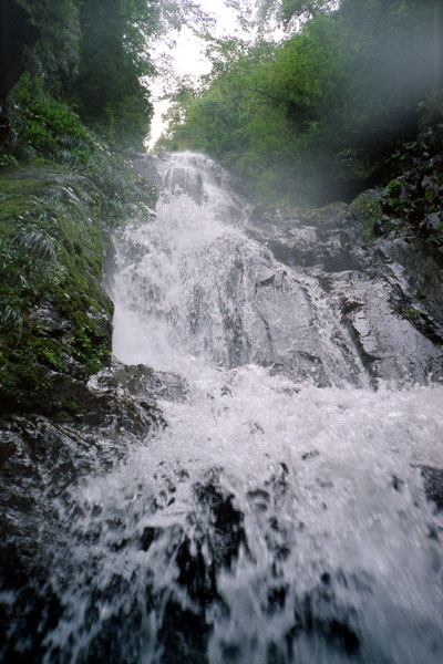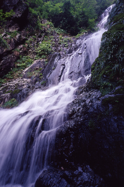 前にも書いたが,常清滝の特徴として,滝壷が発達していないことがあげられる。落差が126mもありながら,滝壷がないに等しいのである。そのため,滝には,ごくごく近くまで接近できる。至近距離から,超広角レンズで滝を見上げてみた。