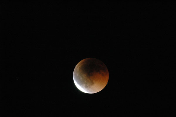 月は,思ったよりも明るいものである。それに対して,皆既中の月はかなり暗い。これらを同時に写しこむとき適正露光を見きわめることは容易ではない。しかし,ディジタルカメラであればこそ,何段にも段階露出をおこない,適正と思った露光量で,さらに撮りすすめればよいことになる。