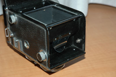 リコーフレックスVII型は,平面だけから構成される。ボディのこのようなしくみが,「低価格」というリコーフレックスの大きな特徴を支える要因の1つではないだろうか。 |