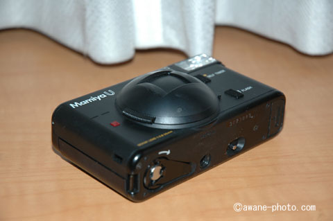 少しまじめに,このカメラを観察してみよう。レンズ部分にバリアをもっていることから,いわゆるケースレスカメラであることがわかる。このレンズバリアを開くと,それはどことなく天文台の観測ドームを想像させてくれる。いや,やはりこれは,月面基地を連想させるものに相違ない・・・・というのは,考えすぎか。さて,マミヤUの発売は1981年7月,ケースレスカメラの先駆といえるオリンパスXA(1979年)やその廉価版的なモデルとして大ヒットしたオリンパスXA2(1980年)の影響を受けているように思われる。そうだ,XAシリーズも,レンズを覆う部分は曲面で構成されていたんだ。