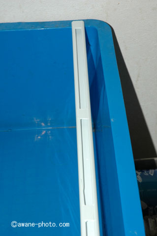 なお,配線カバーは,床や壁に固定して使うものである。したがって,その底にはべったりと,両面テープが貼られている。本来の目的で使用するならば,これはたいへんありがたいサービスであるが,処理液に浸して使うことになるのだから,すべて剥がしておかねばならない。これは,意外と面倒な作業であった。気をつけるべし。